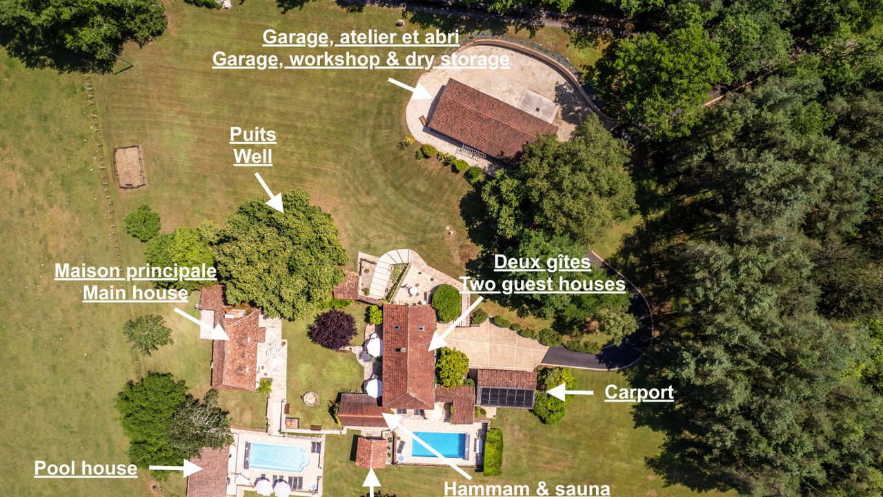A37848BD24 - This stone property exudes authentic charm and a rare sense of serenity. It comprises a main house, two guest houses, two swimming pools with pool house (currently a gym), a fully equipped wellness area and a large garage