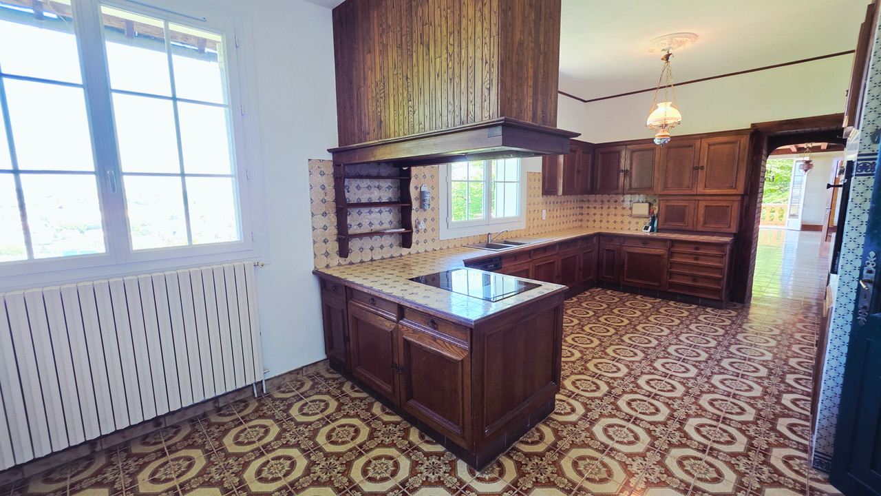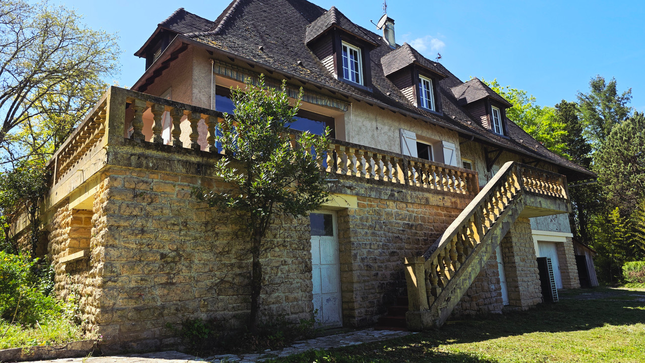 Perched on 35,000 m² of wooded land, this spacious 261 m² house offers exceptional views. It comprises 12 rooms including 4 or 5 bedrooms. Two bathrooms, 2 toilets, a mezzanine, and a large living room opening onto a 43 m² northwest-facing terrace. Heating by heat pump and open fireplace. Two large garages, cellar, electric gate. Insulated attic and cellar. Outbuildings of over 40 m². Well-maintained and ready to move into. A quiet and green setting, ideal for a family or a gîte project. Visit our website for more details.