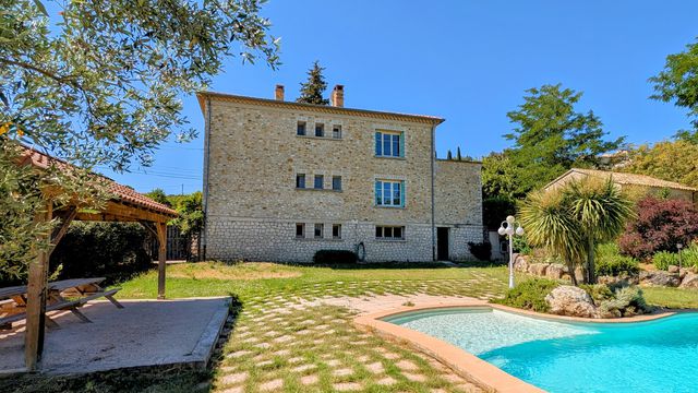 Built in 1970, the property features 6 bedrooms, a generous 90 m² garage, and a spacious 970 m² plot. It boasts a large private swimming pool and expansive outdoor space in the easy-to-maintain garden. With panoramic views over the surrounding countryside, you'll experience total privacy and a true sense of escape—perfect for reconnecting with nature and the Provençal way of life.
