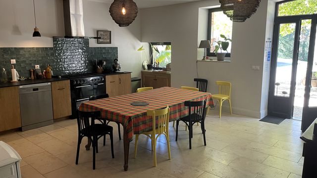 A32464DD86 - Set around a large private courtyard, with trees offering shade from the sun, this wonderful property, in an utterly peaceful setting, consists of four separate dwellings: the three bedroom family house where the owners live with their children; next door and all on one level are two ensuite bed and breakfast rooms, one of which is wheelchair accessible, and a huge kitchen which the guests can use as their own and where breakfast is provided, and two further self-catering cottages, one for six people and one for four, plus extra provision for babies.