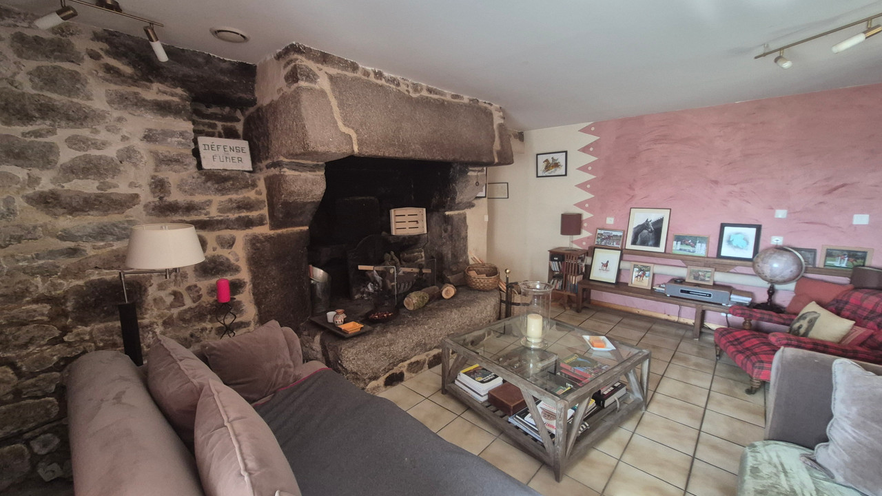 The main house of 150 m², facing due south, combines comfort and character with a cathedral-style fitted kitchen, large living room with monumental fireplace, five bedrooms and two bathrooms.