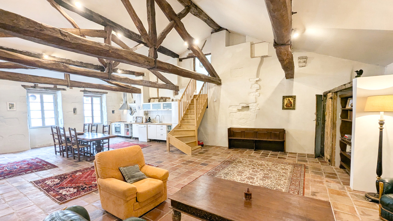 A33977SOM82 - Amazing opportunity to acquire a beautifully-presented home in this mediaeval market town. Character and charm are everything here, from the central entrance hall and sweeping wooden staircase up to the huge attic rooms with exposed beams and down to the ancient vaulted cellars. In between, the well proportioned, airy rooms have been decorated with style. The property has been run as a tourist accommodation business and offers two large two-bedroom apartments, five en-suite bedrooms, and an independent studio/gîte.