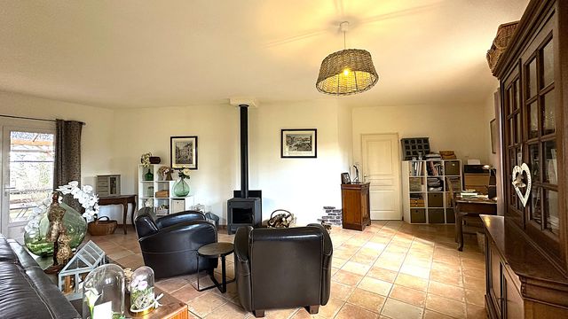 Septic tank up to standards, double glazing, nsulation recently fitted, heated flooring, wood burner and electric heating.