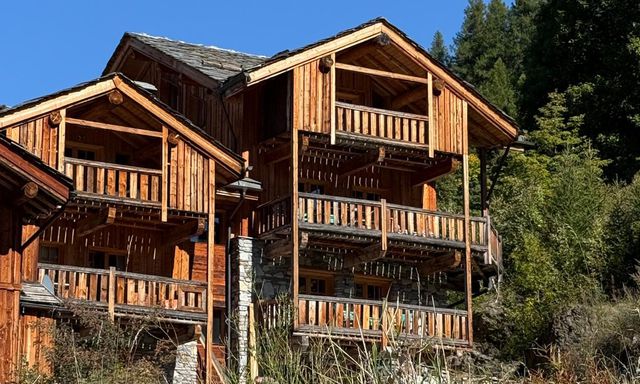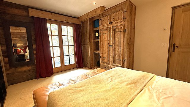 A37755JQB73 - Located in the heart of the Bataillette area of Sainte Foy Tarentaise a Large traditional Savoyarde style 1-bedroom apartment comprising an open plan living room with stone built fireplace and log burner, a fully equipped kitchen with island, a dining area with mountain views, a double bedroom with terrace to the north and a large bathroom.