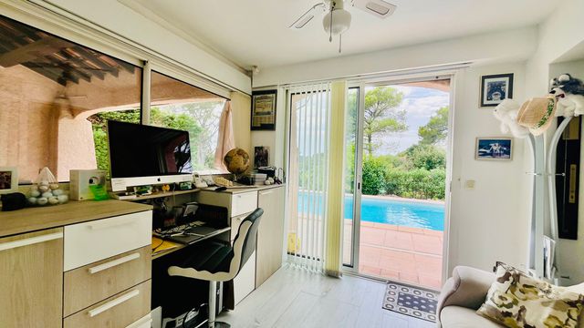 A39347NEM83 - Dans le quartier prisé des Golfs de Valescure, cette villa provençale de 170 m² séduit par son calme, sa luminosité et son terrain paysager de 802 m² avec piscine. Elle propose un vaste séjour avec cuisine ouverte, un bureau, ainsi qu'une suite parentale de plain-pied. À l'étage, trois suites confortables et une pièce polyvalente complètent l'espace nuit. Deux studios indépendants entièrement équipés offrent un fort potentiel locatif ou un accueil idéal pour les invités. Terrasse couverte avec cuisine d'été, garage, forage, climatisation réversible et fibre Internet viennent parfaire ce bien rare proche des golfs et des commodités.