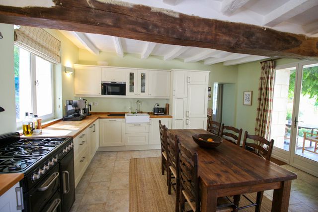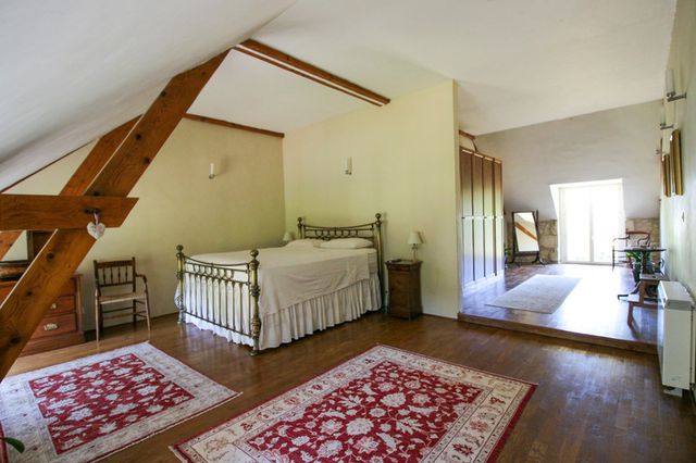 Up a country lane, you find this wonderful home. Entering the first courtyard, there is an open barn (50m2), large enough to park three cars, which has two storerooms (6m2 each) to the side with an attic above. From a lawn, steps take you to a terrace from where you can access the bread oven (12m2). Continuing along the terrace, which overlooks the formal courtyard garden, you enter into the fitted and equipped kitchen (23m2).