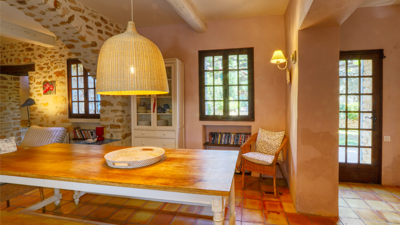A44481EKO84 - On the edge of a peaceful hamlet near the charming Provençal village of Villars, this L-shaped stone-built property is truly a dream. Set among olive groves and rolling hills, it features a large pool (7x8 m) and direct access to hiking trails. Offering 151 m² of living space, it combines the authenticity of old stone, terracotta tiles, elegant windows, and exposed beams with comfort and tranquility.