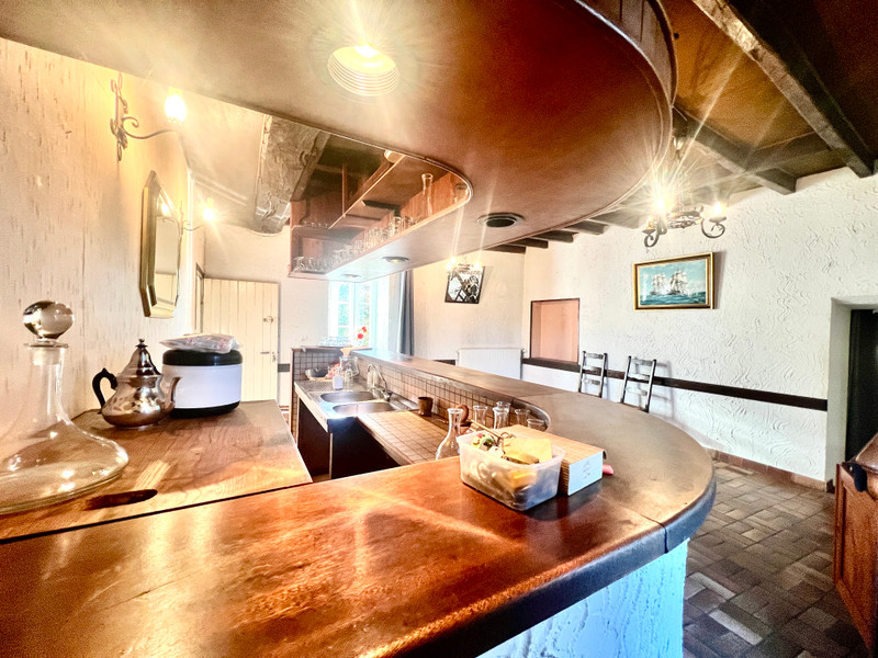 The property includes a habitable house with three bedrooms, generous ground-floor rooms, and space for kitchens, as well as a first-floor restaurant and bar and a large function room. With its combination of historic charm and commercial opportunity, and just 10 km from La Souterraine with excellent amenities, this property is ideal for a variety of business or lifestyle ventures.