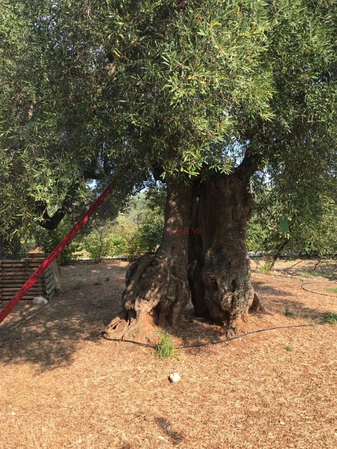 Das ca. 43.000 Quadratmeter große Grundstück ist bepflanzt mit einem jahrhundertealten, ertragreichen Olivenhain, einem Obstgarten und einigen Weinbergen.