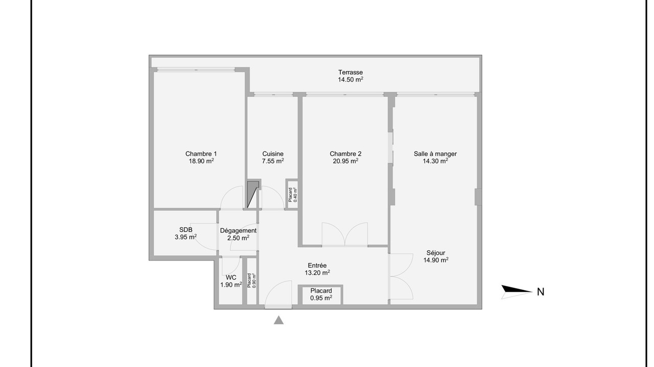 1st floor, 3 room, 2 beds, 101m² + 14m² terrace. Double living room. Carré d'Or district.
