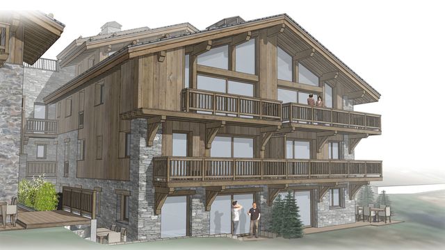 A43262EH73 - Situated in the authentic alpine village of Saint-Martin-de-Belleville, this beautiful new-build 3-bedroom ground floor apartment offers refined mountain living just 250 metres from the ski lifts of the 3 Vallées ski area. Part of an exclusive chalet residence, it features a bright open-plan living area, a private terrace, and high-end finishes.