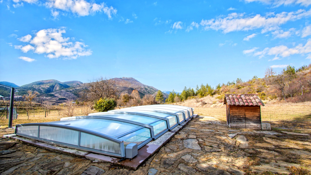 A42712DAD04 - Haute Provence in South of France is known for spectacular natural beauty, gorgeous views, clean air and 300 days of sunshine all year round. This property offers spectacular views in total tranquility and with two hectares of land is perfect for horse lovers , with water source to feed the property, pool and animals. A water source in the south of France is highly sought after.