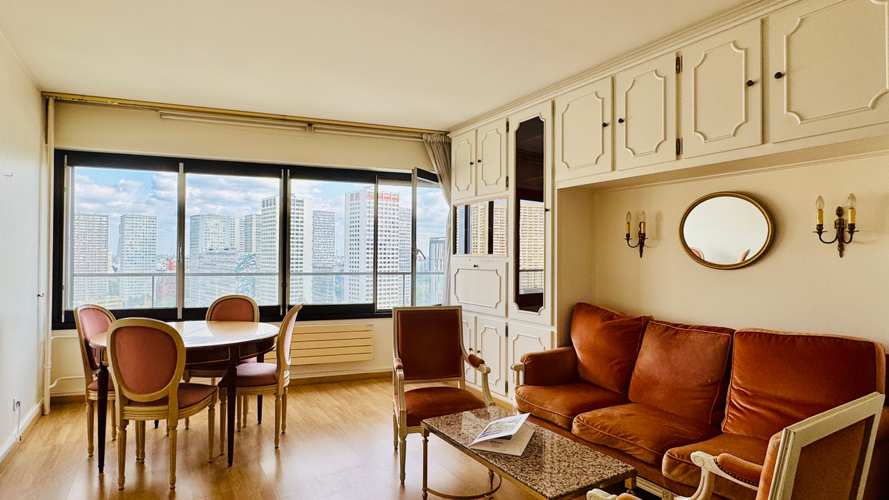 A40567AAD75 - PARIS 13th – Maison Blanche/Place d'Italie – 3-room apt (2 beds) – Energy rating: E/E – 94 m² (see floor plan & virtual tour). On the 18th fl of the Tour Super Italie, at the foot of Maison Blanche M° station (L7 & L14) and 800m from Place d'Italie, with quick access to Orly Airport, this lovely dual-aspect apt of 94.40 m² Carrez (94.0 m² total floor area) offers unobstructed panoramic views. Bathed in light thanks to its N/E double exposure, it stands out for its warm atmosphere and floating wood floors throughout. The layout includes an entrance with built-in closets, a bright 21 m² living room, an equipped separate kitchen with dining area, 2 bedrooms, a shower room, a closet, and a separate WC. Located in a prestigious and secure residence (256 apartments) with caretakers and CCTV, the bldg offers rare amenities such as a private indoor swimming pool and a panoramic solarium on the 34th fl, close to shops and public transport. A cellar is included. Parking available at extra cost.