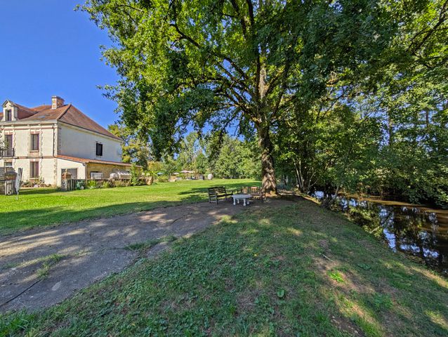 A34986SUG24 - A former mill, originally built in the 1670's as a paper mill, which was later used as a forge, and latterly a flour mill until the 1960's. It was depicted on the cadastre Napoléon of 1811 and has been tastefully fitted out by the present owners with up-to-date bathrooms and modern kitchens. Part of one wing spans the mill stream which passes beneath the building and there is a bridge over to the forecourt, in the midst of nearly 2,5 acres of island. The property is located approximately 1,5 km from a small and historic market town with its medieval fortress, and thus an easy distance to shops, restaurants, and primary and secondary schools. A great family house or business potential for those who love the idea of being literally surrounded by water!