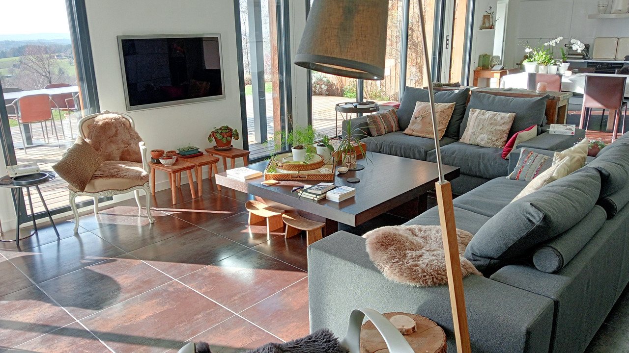 A magnificent, light-filled architect-designed house with outbuildings set on 14-acres. Spectacular