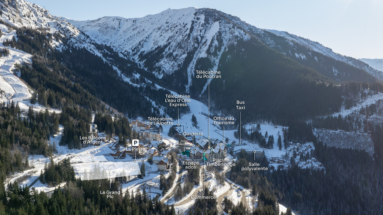 €700,000 ID: 176653Three-room apartment featuring an entrance with a separate toilet, a bathroom, an open kitchen with living room and balcony, two bedrooms. Includes a ski locker and a garage