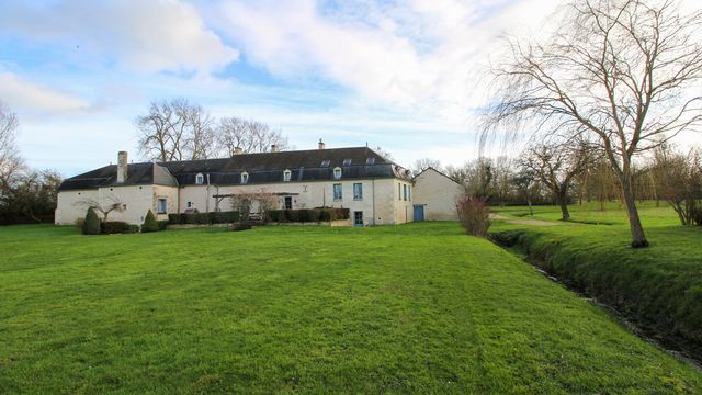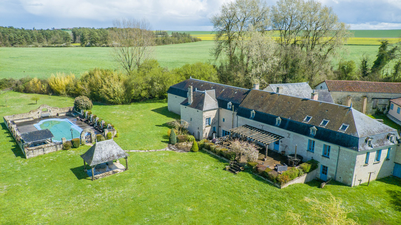 Beautiful manor house with guest house and attached barn, courtyard and garden with pool, meadows an