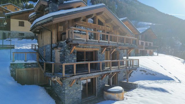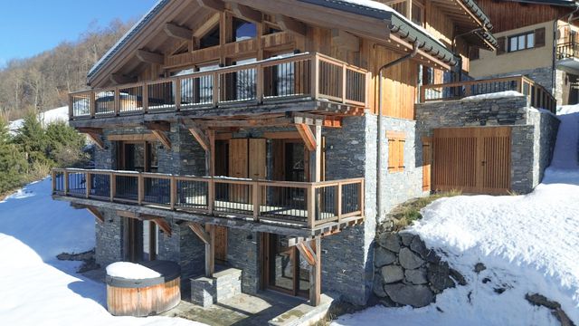 A31491NAS73 - This stunning new build demi-chalet offers 160 m² of luxurious and modern living space split across two levels in a picturesque hamlet named Les Varcins, just 3km from Saint Martin de Belleville and the ski lifts. Featuring 4 en-suite bedrooms, a sauna, a spacious open plan living area, a private garden with a jacuzzi, and a wine cellar, this property combines modern amenities with alpine charm. Enjoy breathtaking mountain views from the terraces and balcony, with the added convenience of a ski room and two outdoor parking spaces.