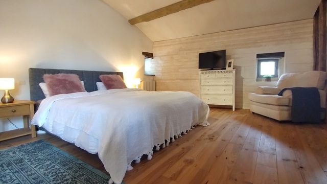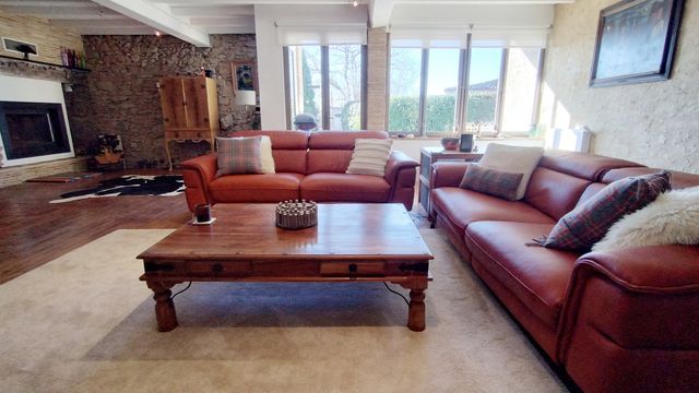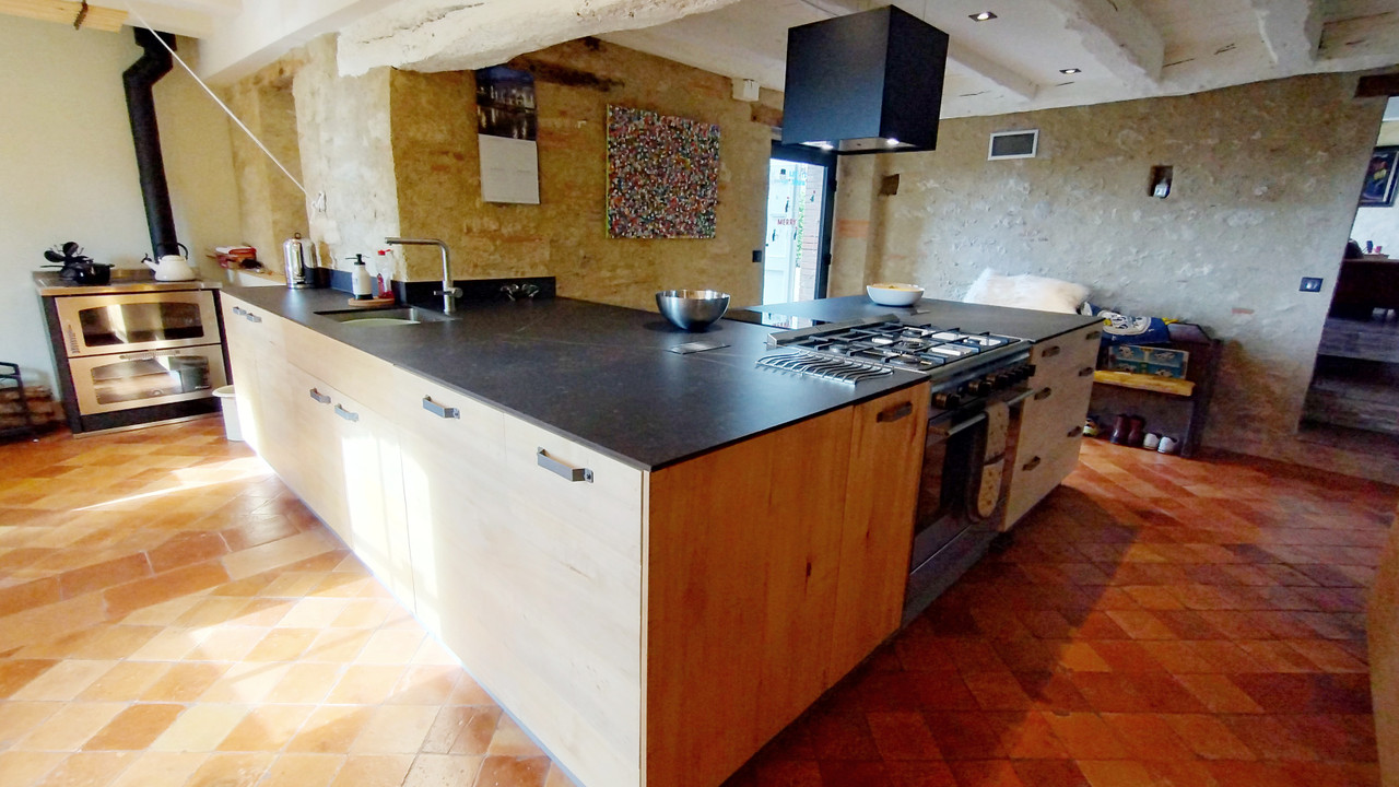 A39338NE81 - Situated in a quiet hamlet, overlooking the rolling hills of the Tarn and the mountains of the Pyrenees and Montagne Noire beyond, you will find this impressive, renovated farmhouse. The property is divided into two parts, but could be easily used as one large house, and currently functions as a popular gîte. There are five bedrooms in total with two bathrooms and the possibility to create additional bathrooms if needed. Both sides of the house have generous kitchens and spacious living areas, ideal for hosting guests or family. The garden offers plenty of spots to relax, outside seating for an evening meal with a view, a large pool and a boules pitch for that full French experience.