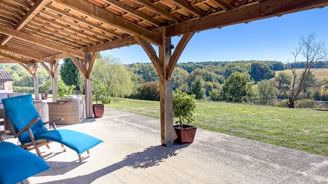 A40621AT47 - In a peaceful countryside setting, this beautifully restored stone home enjoys an elevated position with mesmerising views towards a distant hilltop village. Calm and private, yet close to the bastide towns of Duras and Eymet, it perfectly blends character and comfort.