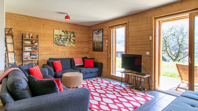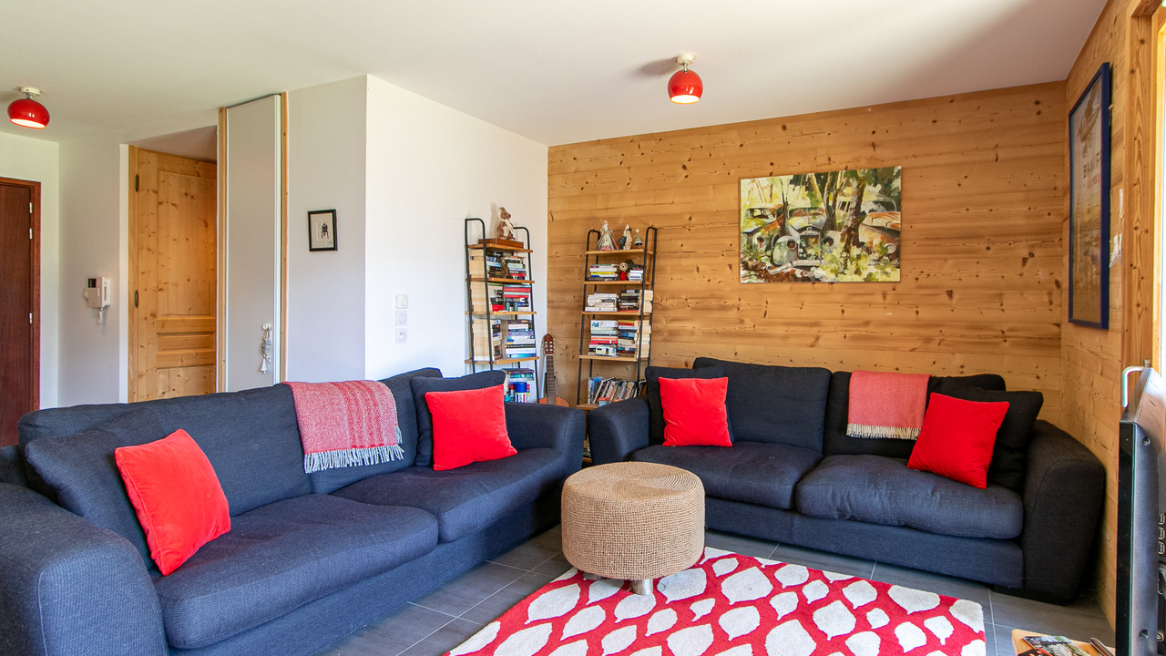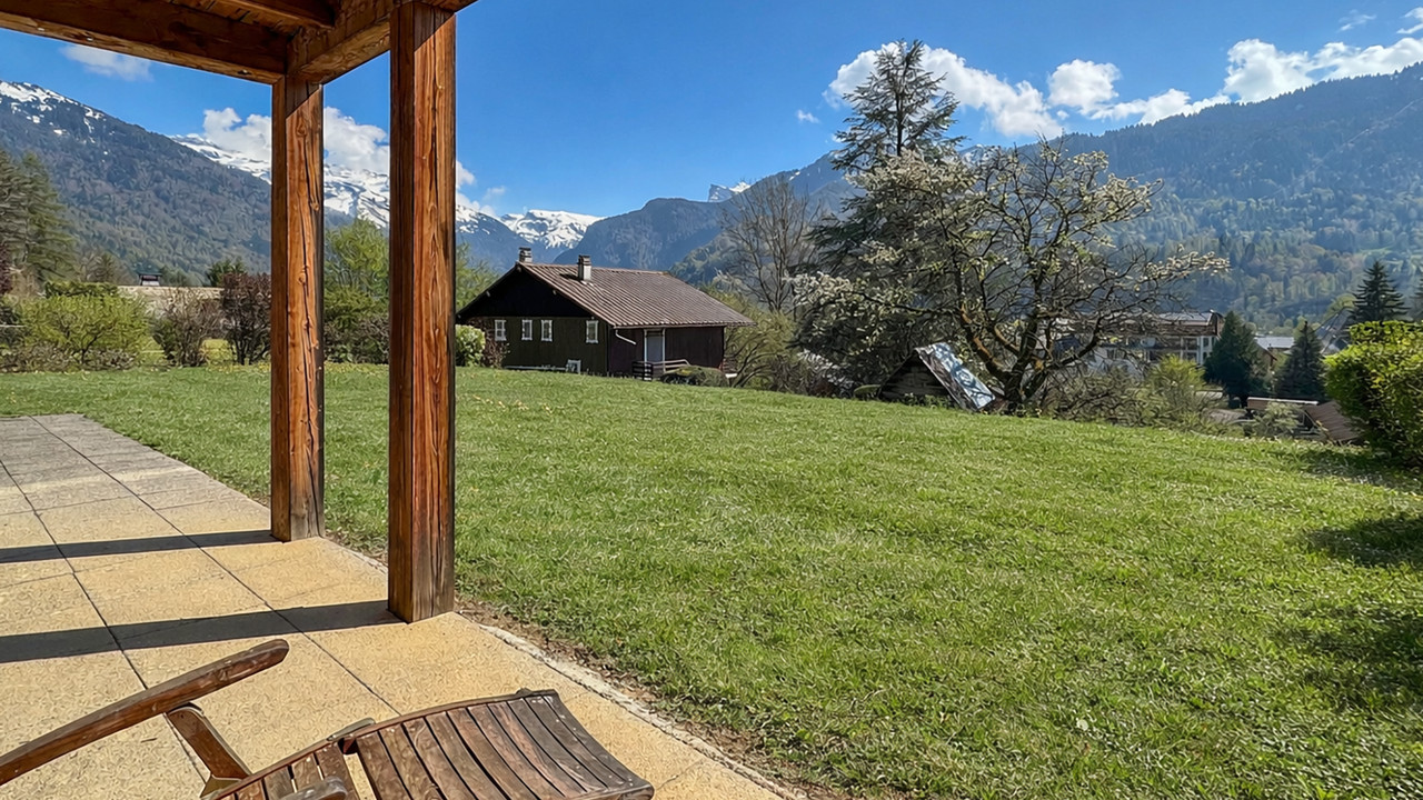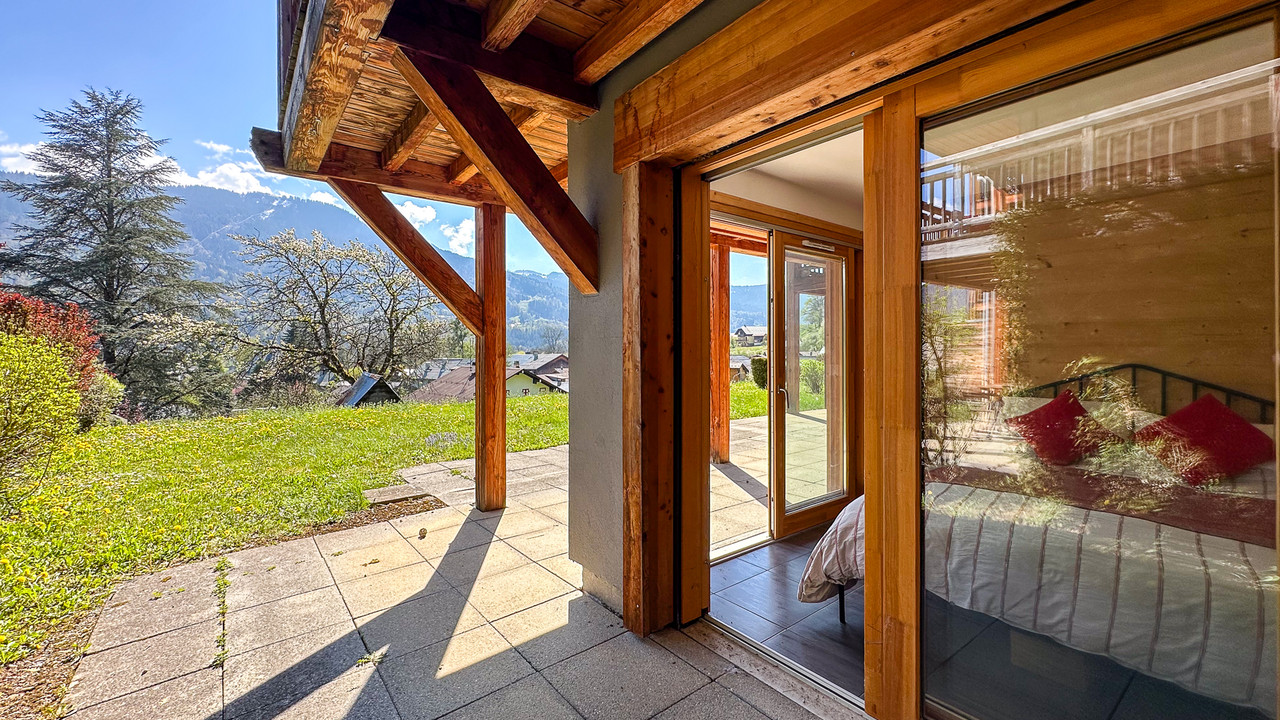 Bright and spacious 3-bedroom ground-floor apartment with large private garden and views over Samoën