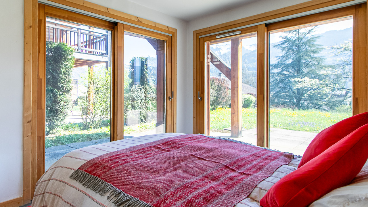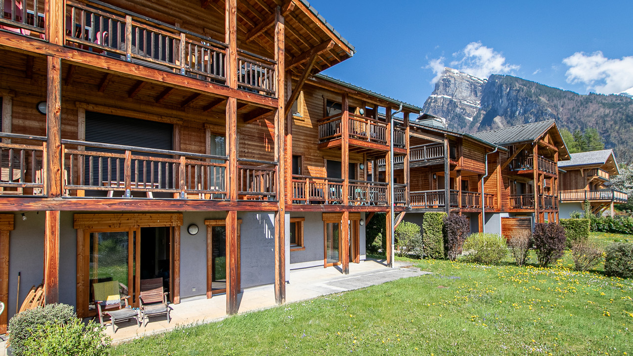 The apartment enjoys superb south-facing views towards Samoëns 1600 and over the village, while the garden also benefits from views of the iconic Criou mountain.