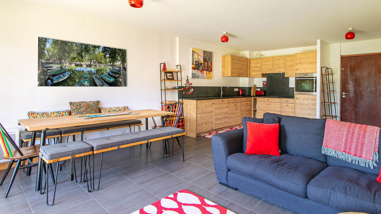 A44285JST74 - Built in 2014 and ideally located within easy walking distance of the centre of Samoëns, this bright ground-floor apartment sits in a peaceful and highly sought-after area of the village.