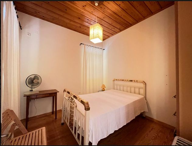 The main structure is stone-built, originally constructed in 1850, while the kitchen and bathroom are later modern additions. The building was fully renovated and the roof replaced in 2001. Suitable for residential or commercial use. The building coefficient has been fully used. The property is listed (protected architectural heritage). It is equipped with three-phase electricity. It has 1 kitchen, 1 bathroom, 1 storage room (not included in the photos with installed pipelines for a 2nd WC). The main building is divided into a corridor, 2 bedrooms, 1 lounge-dining room. The interior walls in the main structure are drywall, allowing the space to be easily reconfigured or be even transformed into a loft. Over the balcony there is a retractable awning. Included also: kitchen cabinets and countertop with an electric stove, electric boiler, wardrobes, one in each room. If desired, the inclusion of the remaining household equipment (washing machine, refrigerator, kitchen appliances, furniture) is negotiable.
