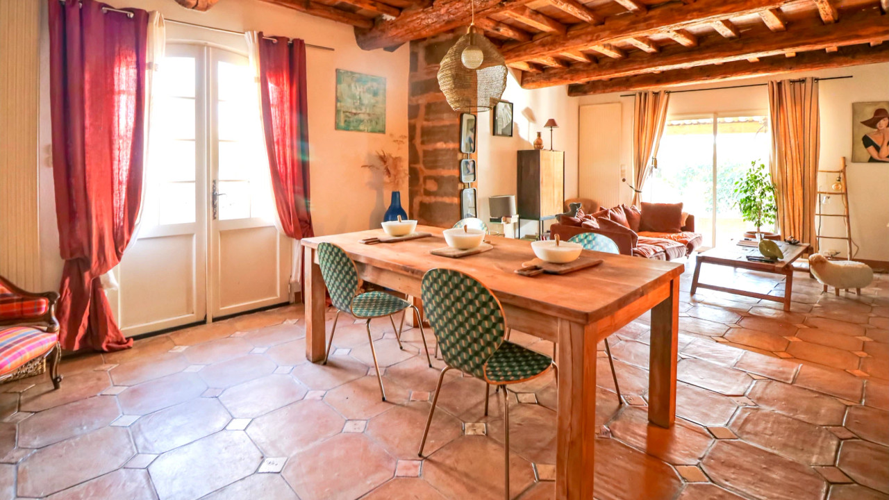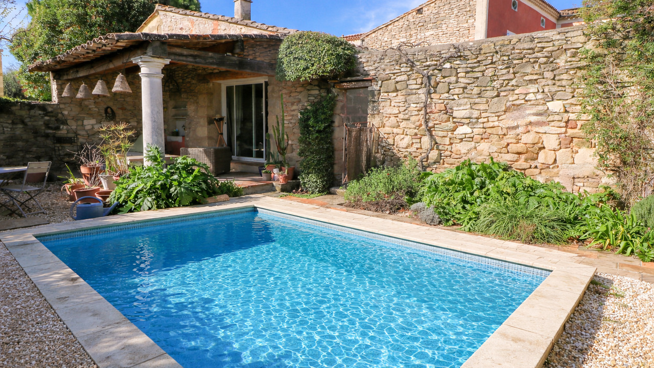 A44102RSI30 - Located in the heart of Saint-Quentin-la-Poterie, this charming bastide offers approximately 250 m² of living space on a plot of around 600 m². Known for its artistic heritage and vibrant atmosphere, the village provides a wide range of shops, galleries, restaurants and local markets, all within walking distance. Conveniently situated with easy access to airports and TGV stations in Nîmes (30 km) and Avignon (40 km). The property is divided into two interconnected parts: a private living area and a second section currently used for seasonal rentals. This flexible layout allows for a variety of uses, whether as a large family home, a holiday retreat or a combined home and income property. At the heart of the property lies a beautifully landscaped private garden with a heated pool, offering a peaceful and secluded setting. Information about risks to which this property is exposed is available on the Géorisques website : https://www.georisques.gouv.fr