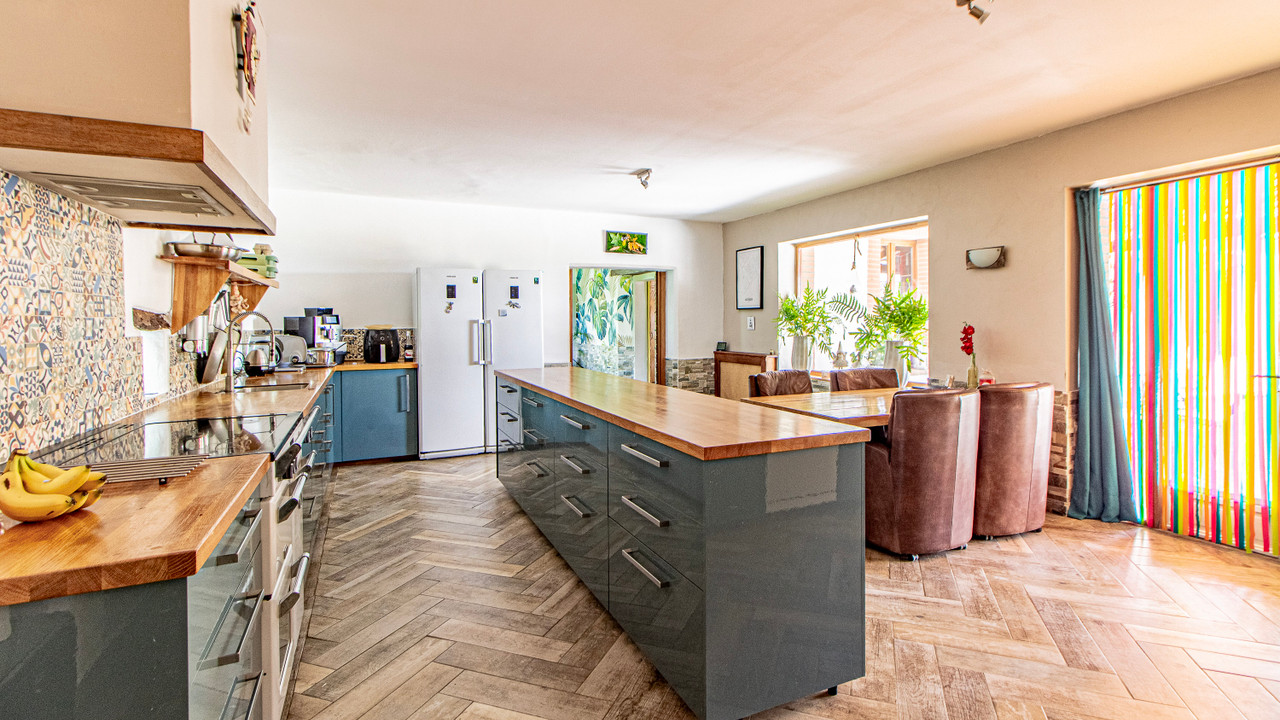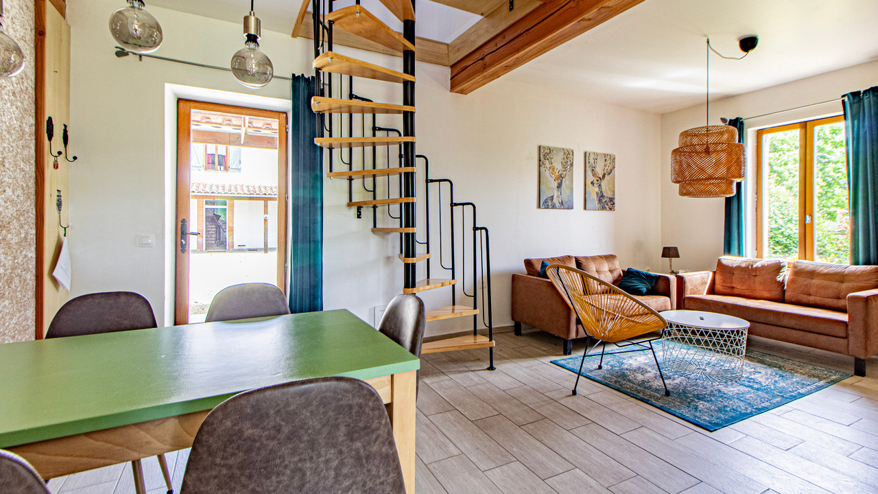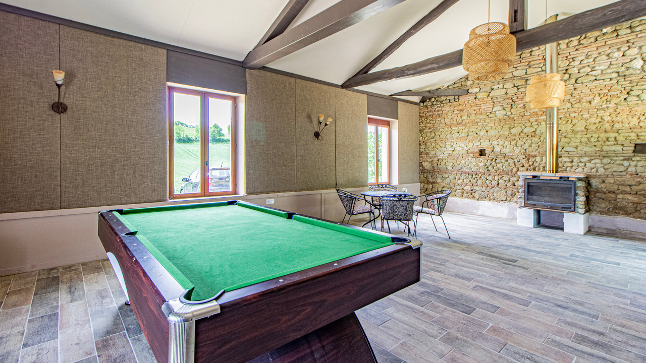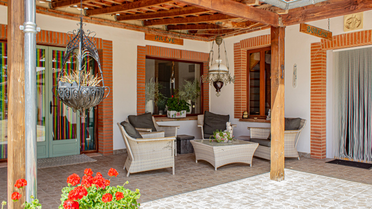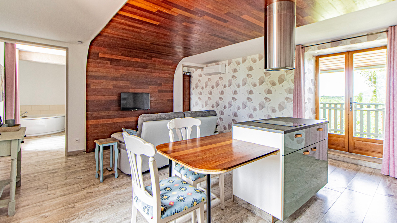 A30395SEF81 - Nestled on a hectare of land, this property combines rural charm and modern comfort with tremendous commercial potential. The owners' residence features a spacious kitchen, a formal dining room, a cozy living room, and an office. Upstairs, the master suite includes a large walk-in closet and a shower room. Another bedroom with potential for private facilities completes the family space. The property offers four gîtes and four guest rooms, each equipped for a comfortable and independent stay. The modern gîtes accommodate up to six people, and the loft gîte has a balcony with countryside views. The guest rooms each have their own shower room and WC. Facilities include a party room, a saltwater pool, a workshop, and a grassy play area. The 24 solar panels ensure eco-friendly hot water production. Currently, the property generates approximately 100,000 euros in annual turnover.