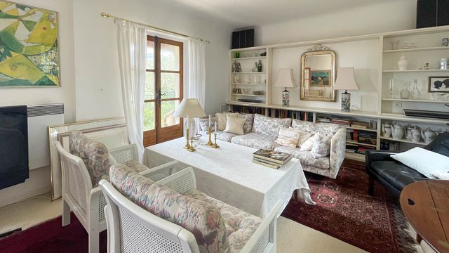 The charming Provencal kitchen is large, with a dining area and access to the garden.