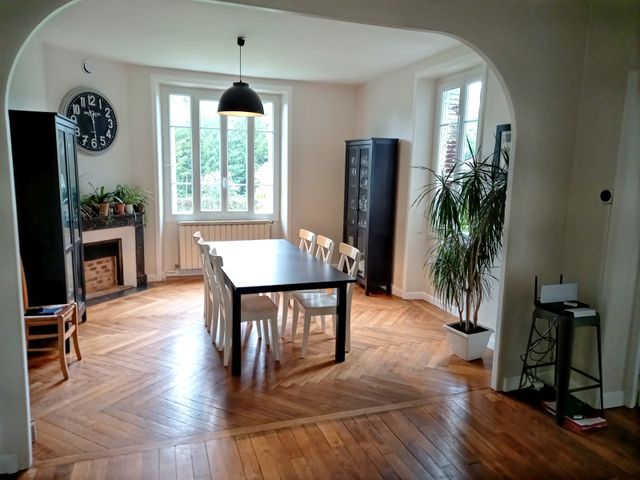 The dining room 27m2 leads off the entrance hall it is spacious with parquet flooring and pvc double glazing, this leads direct to the luminous lounge 46m2 with double aspect windows and doors leading to the garden.