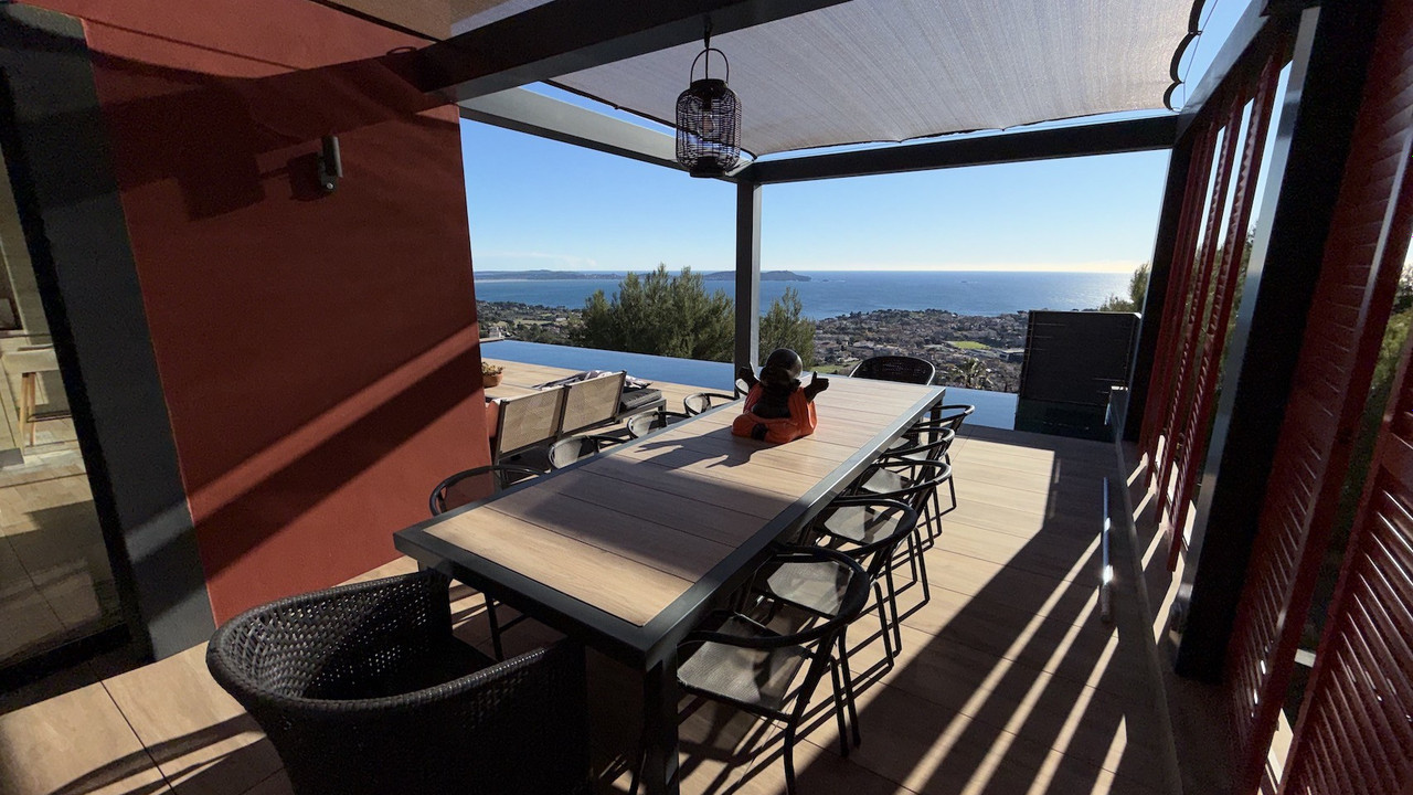 Detached house of 162m² on a plot of 1290m², panoramic sea view, swimming pool, Carqueiranne