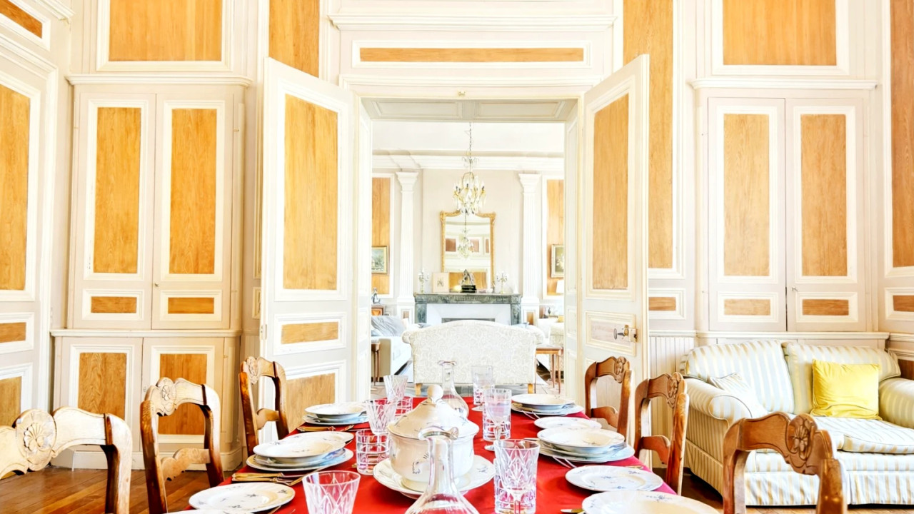 Dating from 1690, this distinguished hôtel particulier, originally built as a Barons' townhouse, is positioned overlooking one of Mayenne's historic town squares, within comfortable walking distance of shops, schools and town amenities.