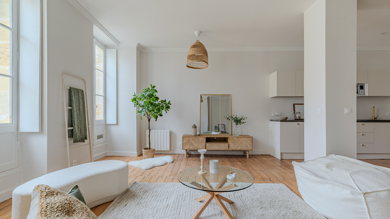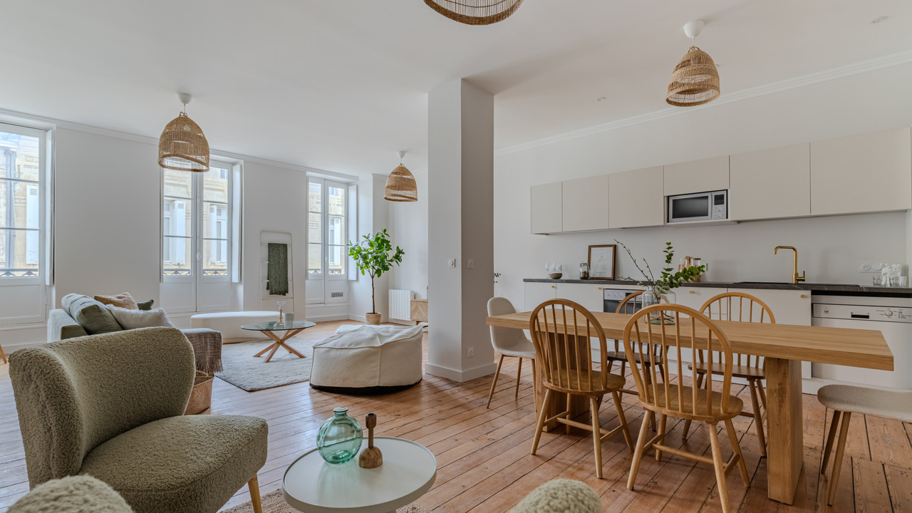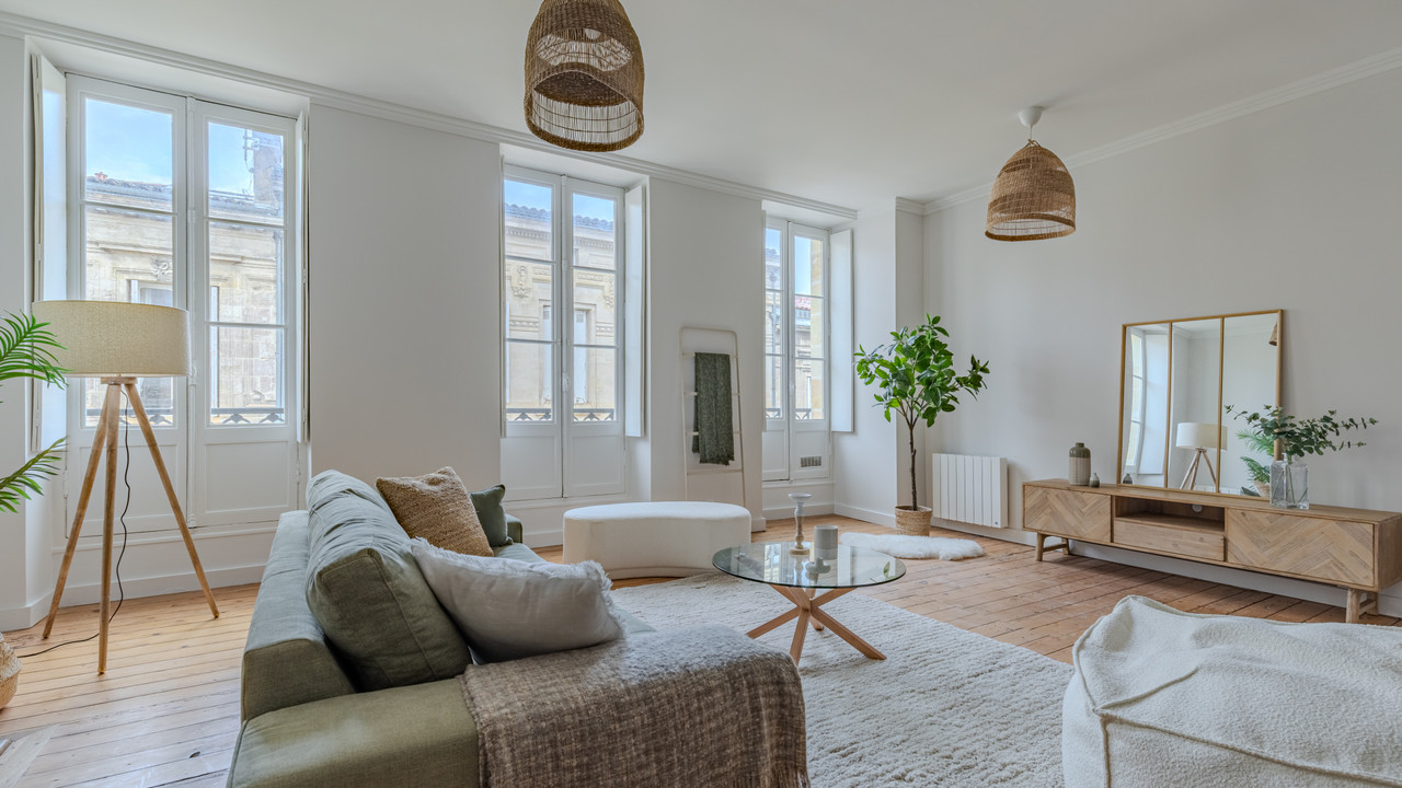 A34800GM33 - Located in the heart of Bordeaux, just steps from Jardin Public, this exceptional apartment combines elegance and comfort in a magnificent historic stone building.