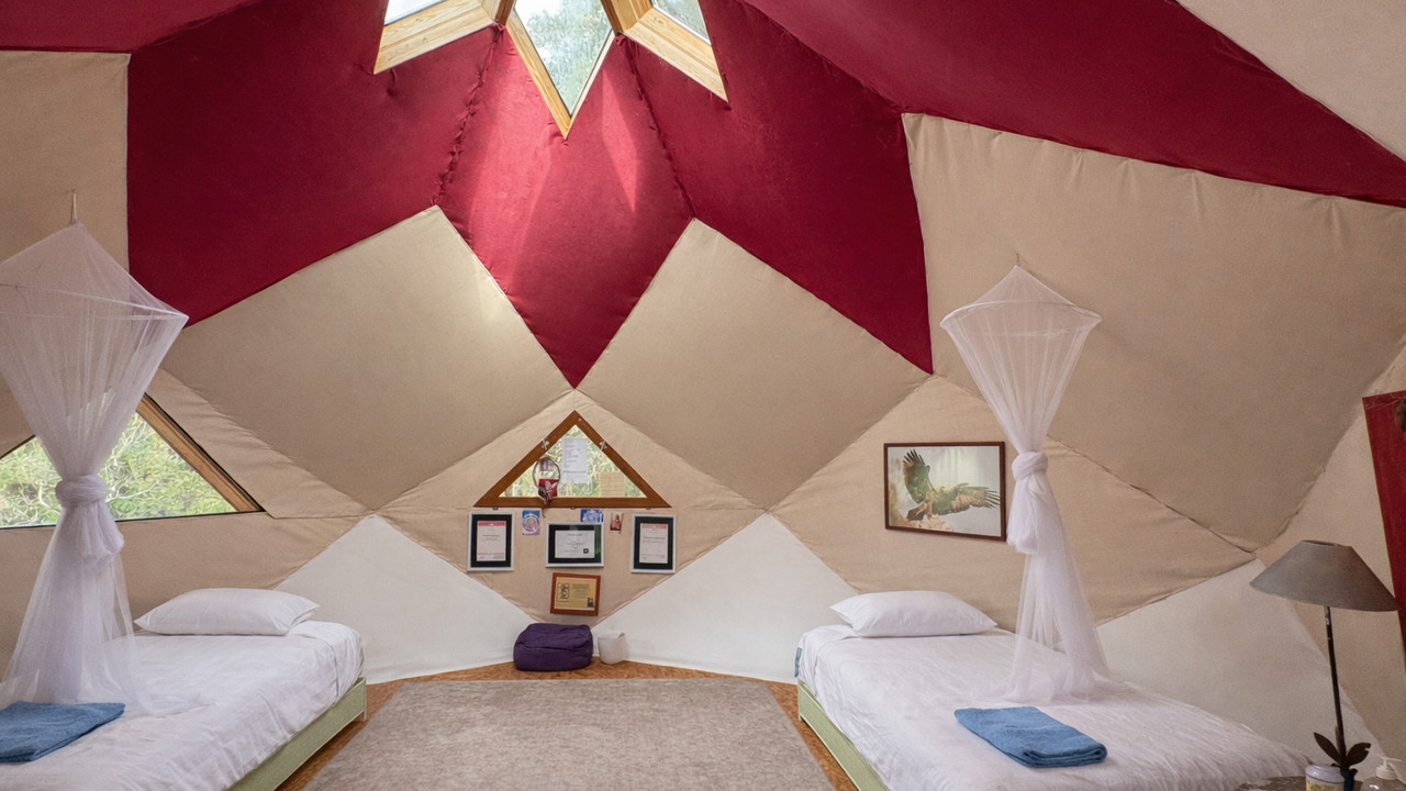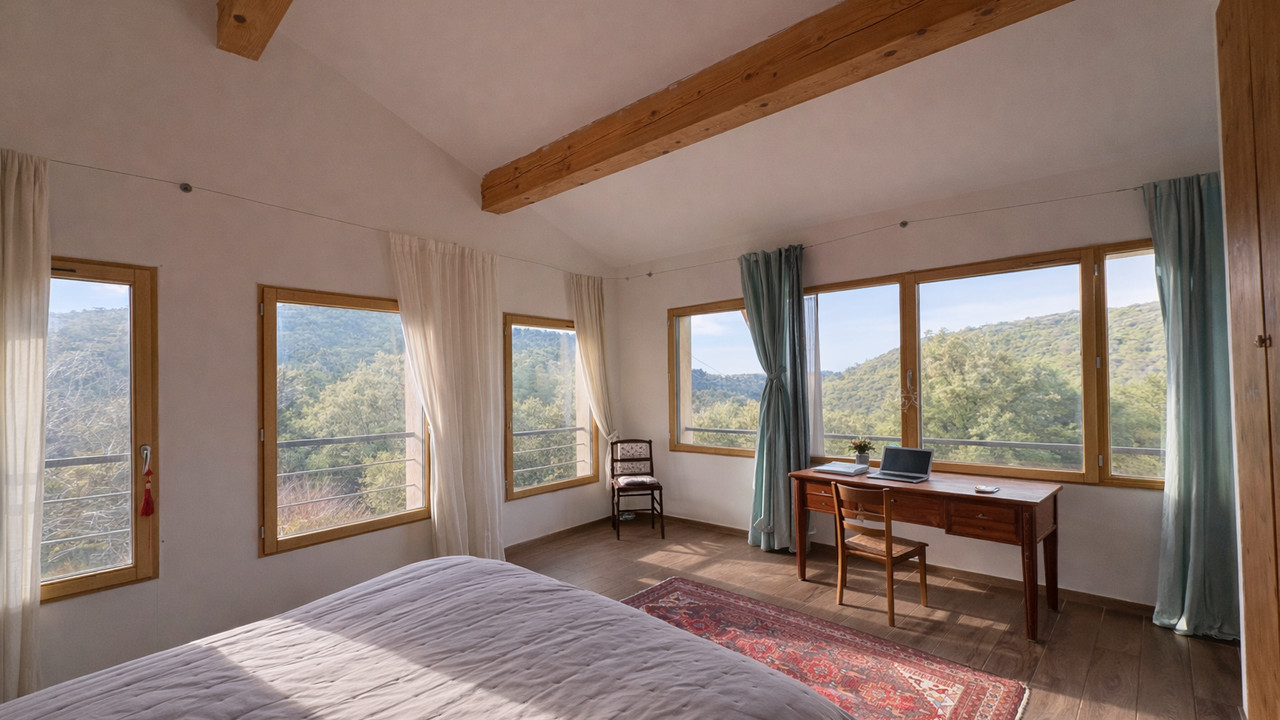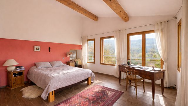 The fully renovated 161 m² main house features bright living spaces, underfloor heating and excellent insulation. Three independent, fully furnished gîtes provide attractive seasonal rental income. A workshop/retreat space, wellness area, swimming pool, two glamping huts, a yurt and a zome.