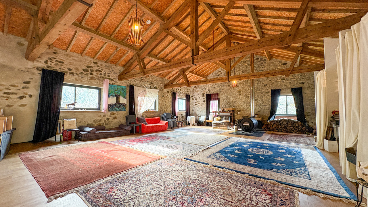 Designed for autonomy, the estate benefits from photovoltaic panels, solar hot water, wood-fired heating, natural springs, an artesian well and large water reserves. The 180 hectares of contiguous land include woodland, meadows and heathland, as well as a 650 m² agricultural barn located 300 metres from the house, ideal for agricultural projects.