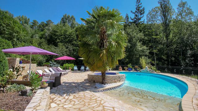 62176MPO46 - No effort or expense have been spared to renovate this superb hide-away in the Lot countryside. The stunning main house overlooks the valley and its own garden and land. Here you will find the deluxe swimming pool with jacuzzi, and 2 ponds with natural springs beyond. There is a separate studio/atelier ideal for painting classes, yoga etc. The luxurious main house offers a professional kitchen, dining room, salon and 7 very comfortable en suite bedrooms. The 2 bedroom apartment is ideal for rentals or could be the owner's accommodation.