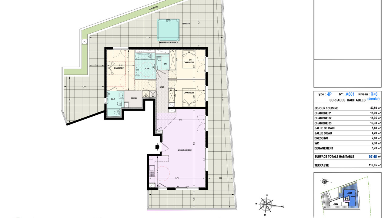 A38081SST06 - Le Cannet, Located in a contemporary residence surrounded by lush greenery, this stunning top-floor apartment offers 97 sqm of interior space and an expansive 119 sqm rooftop terrace with a private jacuzzi — the perfect setting to enjoy the French Riviera lifestyle.