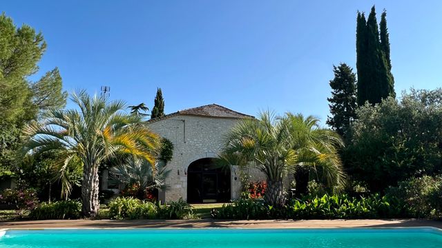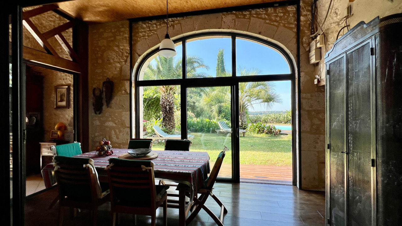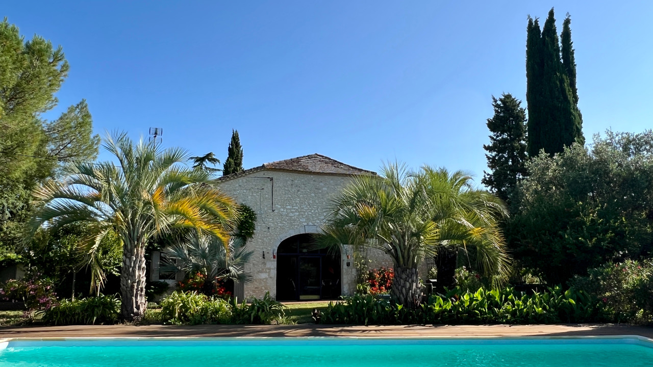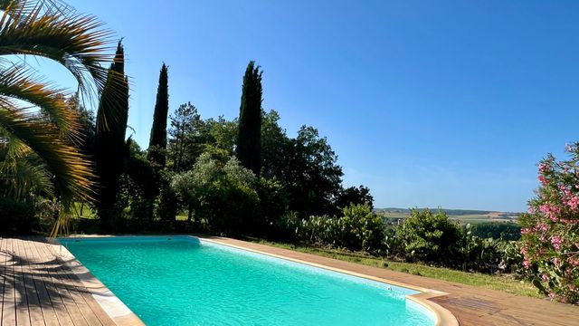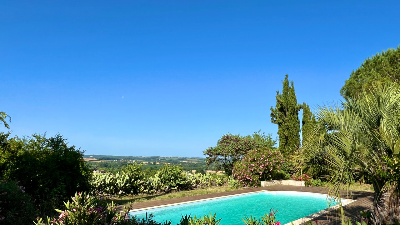 A44116GJP47 - Tucked away at the end of a country lane that winds up the hillside, this enchanting property enjoys panoramic views from all sides. Surrounded by a vibrant, flower-filled garden and featuring a large swimming pool, the house has been extensively renovated and modernised in recent years. Highlights include a breathtaking living room with a cathedral ceiling and a veranda that overlooks the pool. The spacious accommodation offers four bedrooms, three bathrooms, and a generous kitchen-dining area. Ideally located just 3 km from the charming town of Duras and only 39 minutes from Bergerac airport. Information about risks to which this property is exposed is available on the Géorisques website : https://www.georisques.gouv.fr