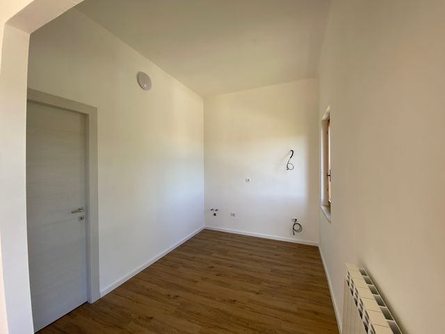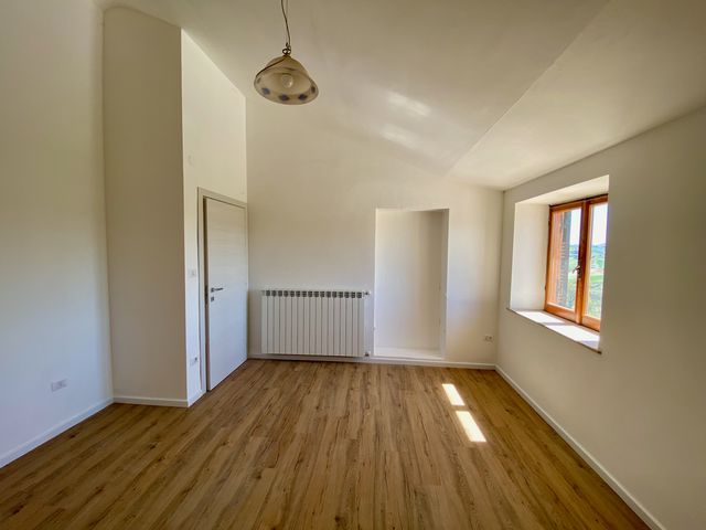 The upper floor hosts three beautifully proportioned apartments. The first (approx. 86 sqm) comprises a bright open-plan kitchen/living area, three bedrooms, and two bathrooms, complemented by an attic room. The second (approx. 90 sqm), adjoining the first, offers a similar layout with a kitchen/living area, three bedrooms, two bathrooms, and attic space. Both units enjoy direct access to a charming panoramic pergola of approximately 37 sqm - an idyllic setting for outdoor relaxation overlooking the surrounding landscape.