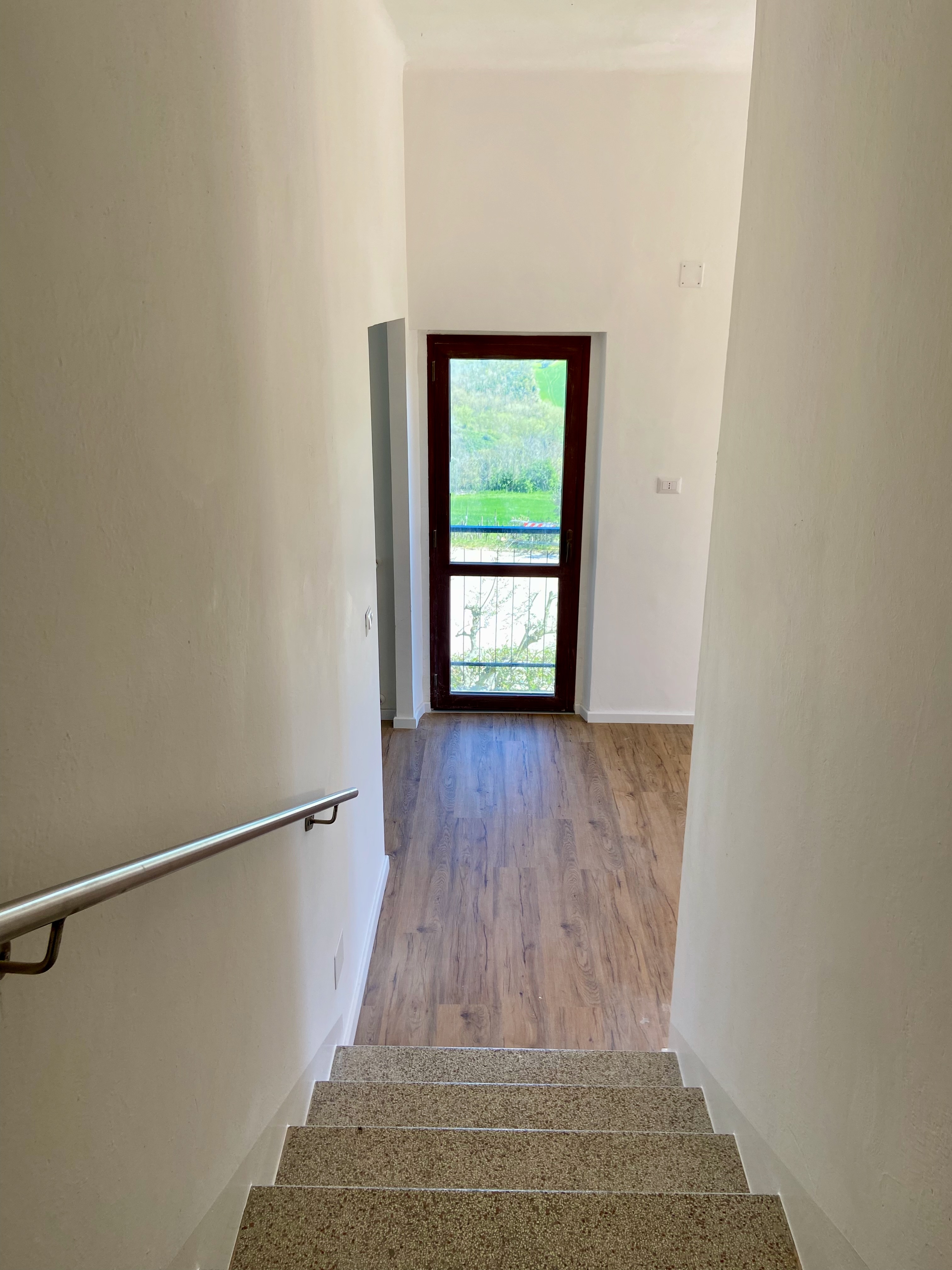 The third apartment, located on the first floor and accessed via an independent external staircase, extends to approximately 90 sqm; it offers a more private layout and comprises a living room, separate kitchen, storage room, two bedrooms and two bathrooms, further enhanced by a truly captivating panoramic terrace.