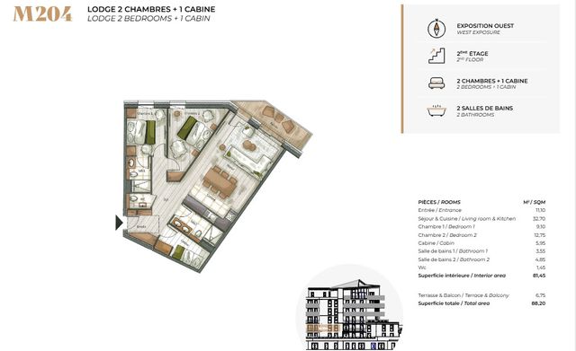 A39686JQB73 - A unique opportunity to invest in High Altitude Tignes : 15 apartments are available in this brand new off plan resort development, ideally located by the piste and featuring modern luxury amenities, with prices ranging from 745,000€ to 1,900,000€ (1 bedroom plus cabine bedroom 45m² to 3 bedrooms plus cabine 101m²).