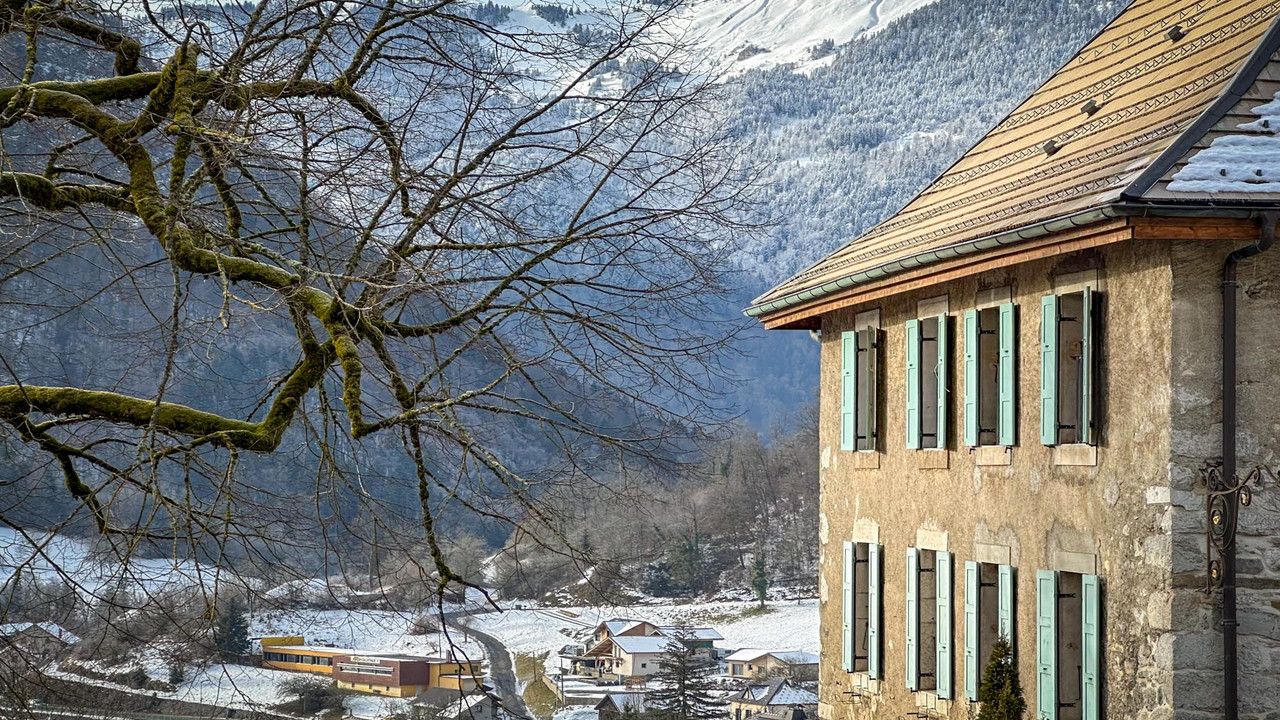 A33890JST74 - Originally dating back to 1585, this stunning historic stone house in Mieussy, Haute Savoie, offers breathtaking south-facing mountain views, just 30km from Geneva and near renowned ski resorts.
