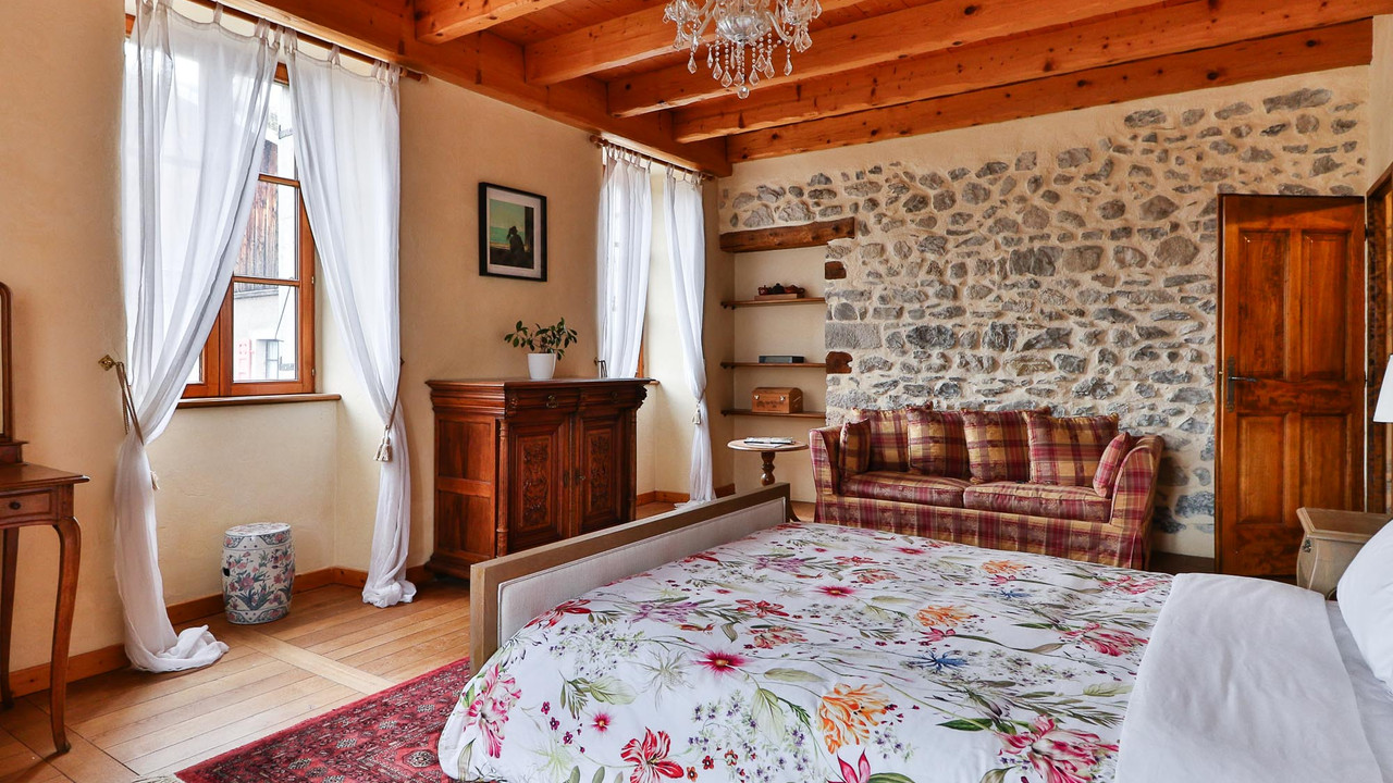 With period features, natural stone floors, a grand staircase, and a majestic vaulted wooden ceiling in the barn conversion, it blends charm and luxury. Boasting 6 bedrooms, multiple living areas, a large garden, terraces, and flexible accommodation, this unique property is perfect as a family home or alpine retreat.