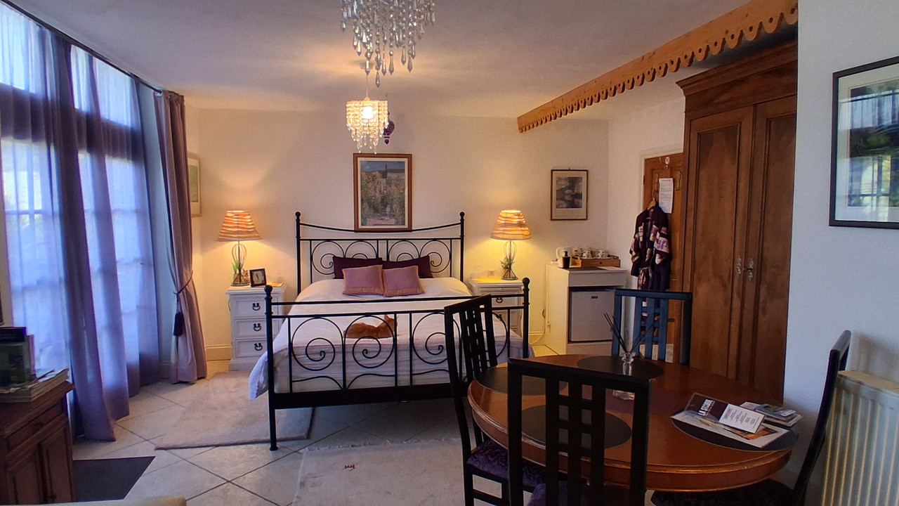 The main house offers four double bedrooms, while a self-contained annexe apartment provides excellent flexibility. The annexe includes a sitting room, fitted kitchen and shower room, with a spiral staircase leading to a large bedroom above, making it ideal for guests or independent living. The property enjoys magnificent views of the Donjon castle to the front, while to the rear there are far-reaching views across the Vendéen countryside, offering a rare combination of historic village centre living and open rural outlooks.
