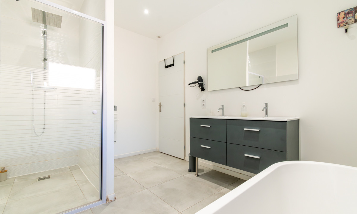 A38780JAV11 - In the heart of the Corbières wine region, this exceptional early 1900s domaine blends character and modern comfort. Fully renovated, it offers 580 m² including a spectacular 90 m² cathedral-style living room with open Italian kitchen, 6 elegant en-suite bedrooms, and two independent gîtes with private terraces. Comfort is assured with floor heating, full air conditioning, ground-source heat pump, solar panels, and excellent energy ratings. On 2,530 m² of landscaped Mediterranean gardens, enjoy a covered terrace, pool with cover, pétanque court, and shaded seating areas. A vast 253 m² garage and parking for 10 cars complete the property.