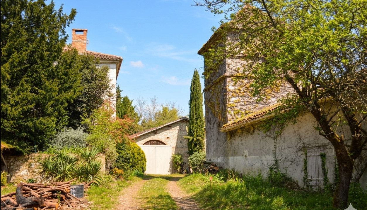 Just 10 minutes from Agen and 1 hour from Toulouse, discover a rare property nestled within 4.4 hectares of unspoilt countryside. This haven of peace, a true ode to serenity, comprises a characterful residence, a monumental barn and an authentic dovecote.
