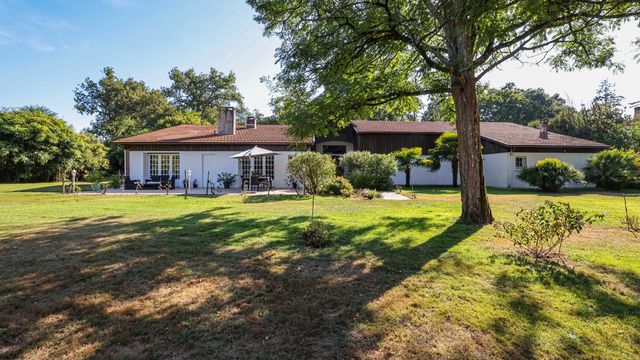 A39381EPR33 - Exceptional property in Mios – 300 m² on a landscaped 1-hectare park. Renovated former stables, bright living room with fireplace, 6 bedrooms, heated pool, double garage, peaceful setting close to town center. A must-see!