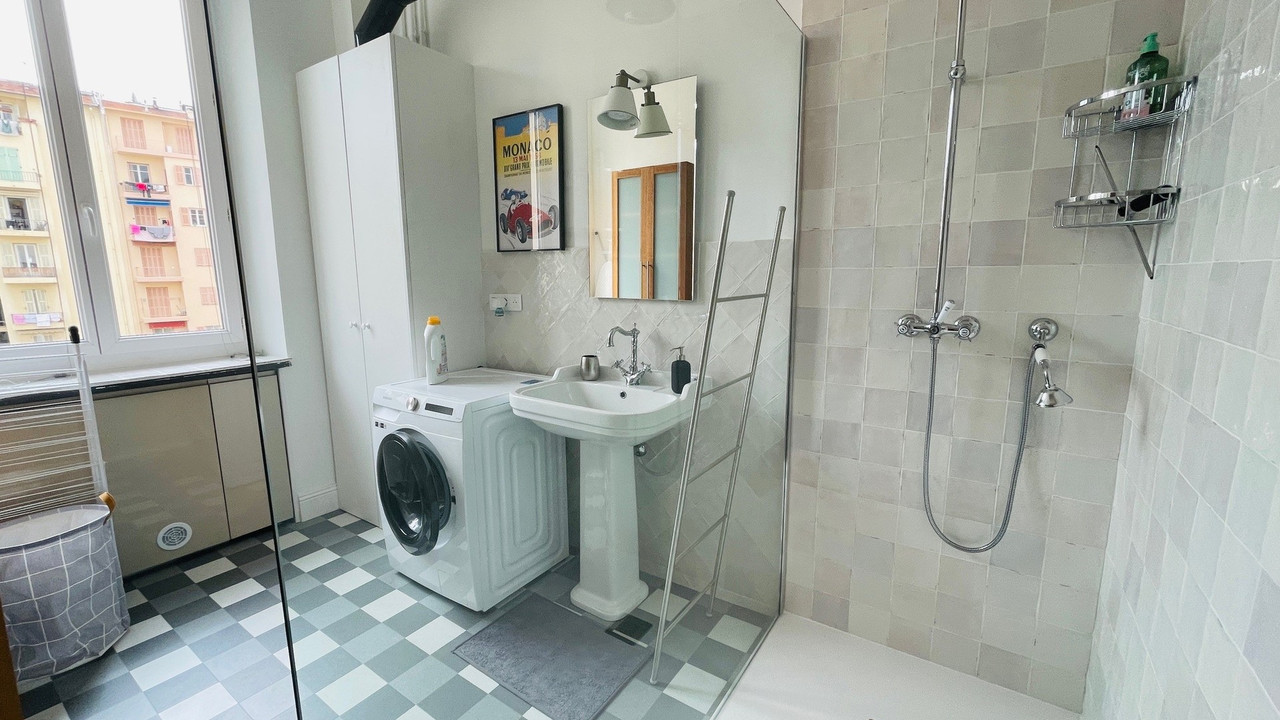 Nestled in Nice's sought-after Libération district, this 73 m² (780 sq ft) two-bedroom apartment is located in an Art Deco building.